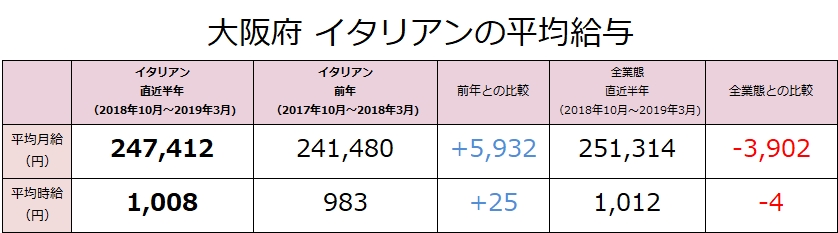 イタリアンの社員月給は前年比5,932円増(247,412円)。大阪府のイタリアン業態の最新求人データを求人@飲食店.COMが発表!