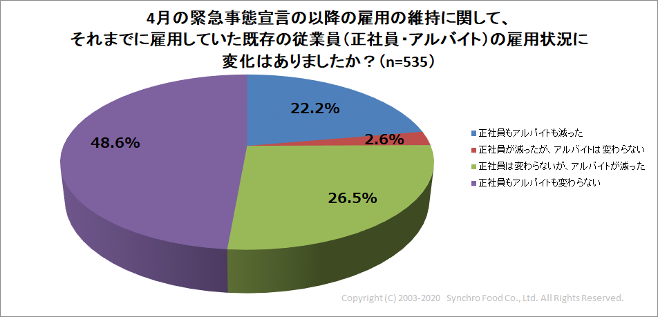 飲食店に特化したリサーチサービス「飲食店リサーチ」(https://www.inshokuten.com/research/company/)を運営する株式会社シンクロ・フード(本社:東京都渋谷区、代表取締役:藤代真一、東証一部:3963)は、飲食店.COM会員を対象に、コロナ禍における飲食店の雇用と採用状況についてアンケート調査を実施いたしました。