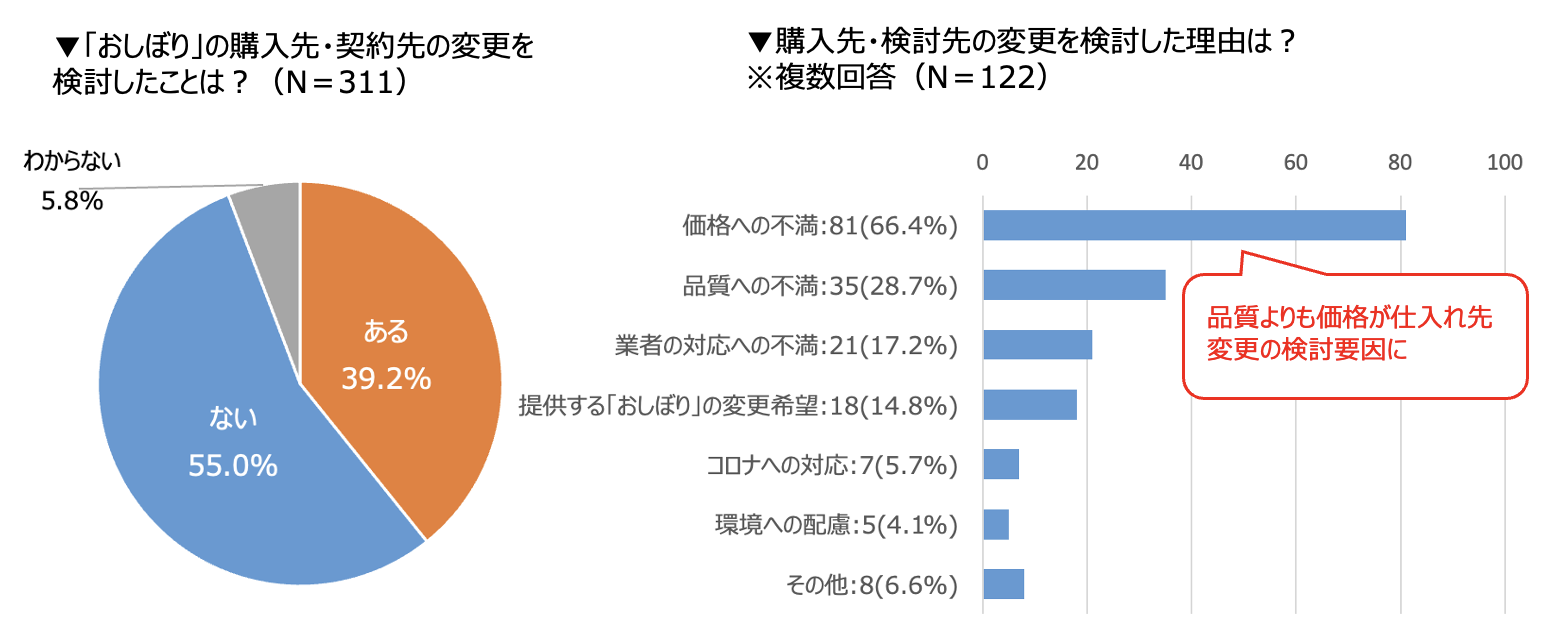 約39%の飲食店が、おしぼりの購入・契約先の変更を「検討したことがある」と回答