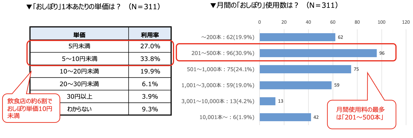 おしぼりの単価は、6割以上が「1本10円未満」。低コスト運用が主流